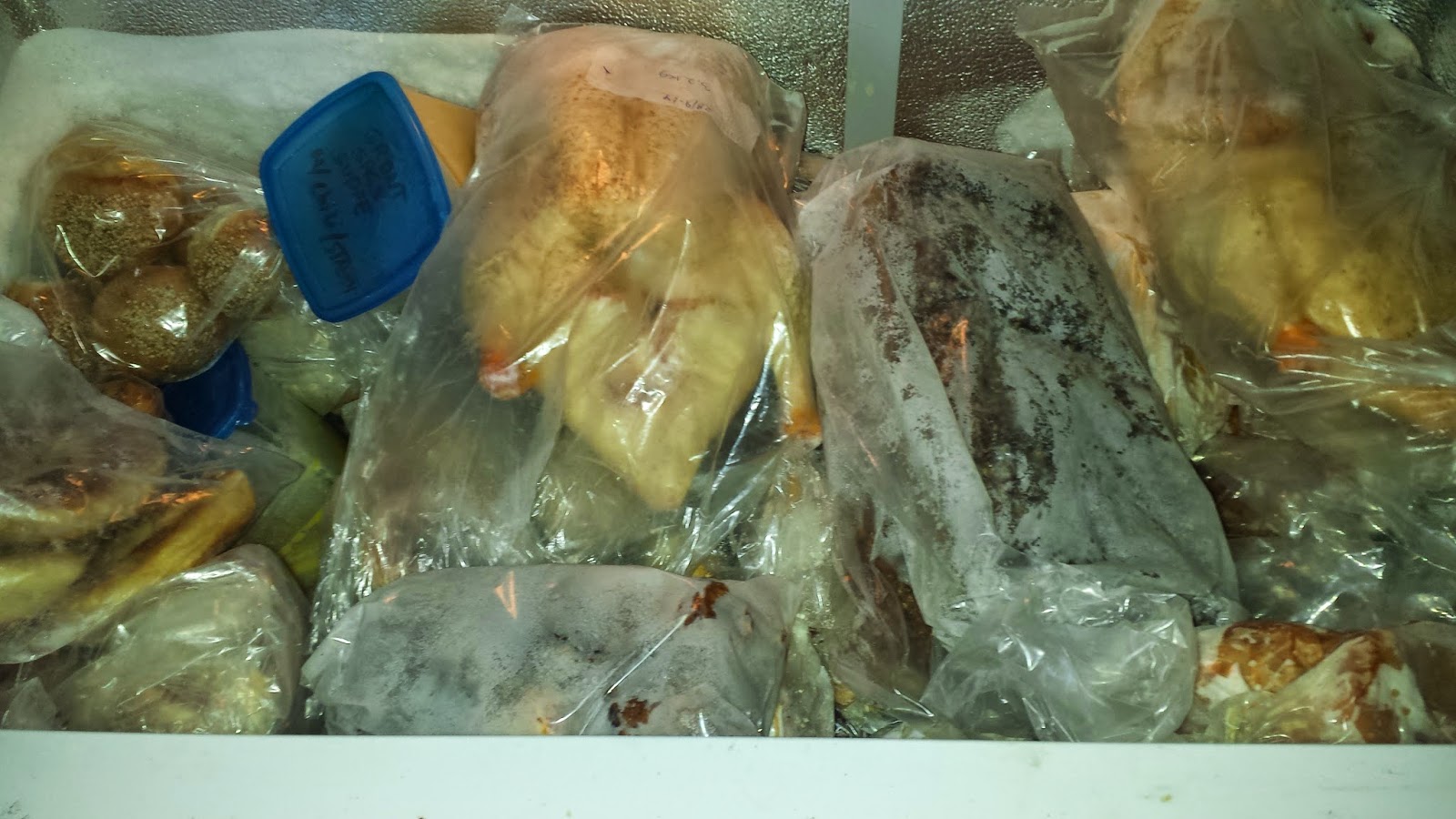Jeg er i den lyksagelige situation at jeg har 2 frysere. Den ene til frugt, bær og grøntsager (brødet burde gså ligge i den fryser men på grund af pladsmangel måtte jeg ligge brødet i kødfryseren), og den anden til kød,