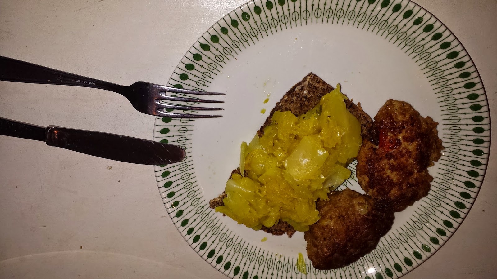 I går var det så frikadeller og hvidkåljeg havde fundet frem (var forberedt i forhold til min madplan). Hvidkålen var kogt, så den krævede ikke meget behandling. Jeg havde tænkt at den skulle bruges til stuvet hvidkål, men da dagens øvrige middagsdeltager ikke brød sig om det måtte jeg finde på noget andet.