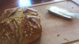 | Og så til det vigtigste ….smagsprøven med hjemmelavet smør…mums |