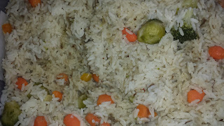 Når risene og grøntsagerne har trukket færdigt og vandet er suget op, blandes massen med olien, postejen og hvidløget.