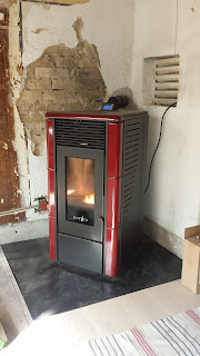 | vores pilleovn nyligt opsat så den kan tørre det gamle hus godt igennem inden vi pudser væggene op på ny. Derefter skal vi have en væv på væggene med en smuk struktur i. |