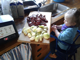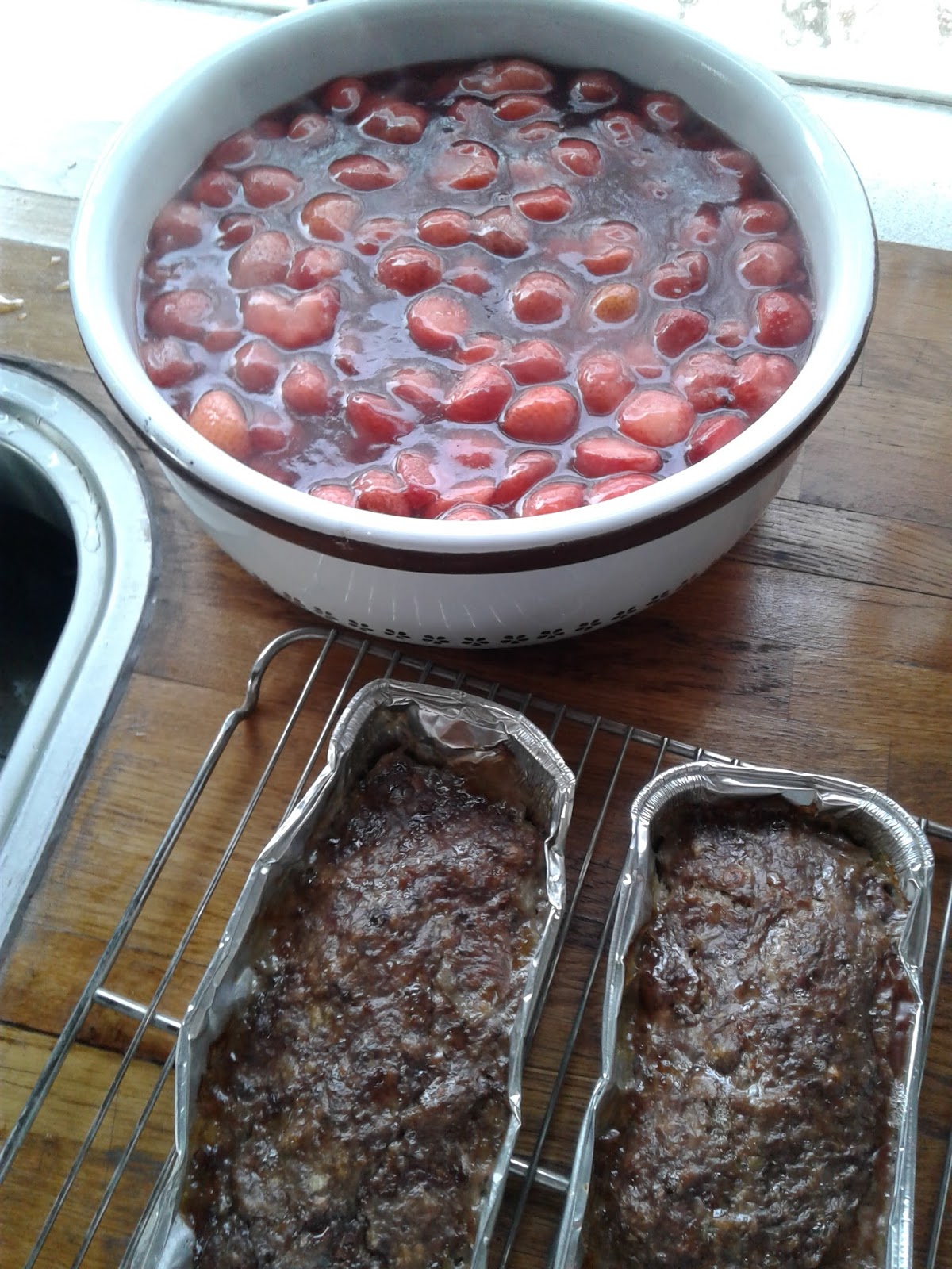 Mens vi kørte lever, ansjoser, fedt og løg igennem maskinen havde vi sat jordbær over blusset, sådan at vi kunne lave lidt jordbærgrød også.