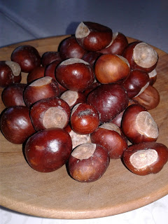 Minna Rosa (barnebarnet) og jeg har også samlet kastanjer. De er så flotte i farven og så er de sjove at lave kastanjedyr af.