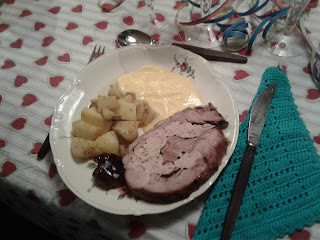 Nytårs aften var vellykket hos os, altså lige bort set fra at sovsen skilte, men blevsamlet med mælk, jeg glemte at tænde for de råstegte kartofler. Og min mand Freddy glemte at komme rejer på den kolde torskeanretning.