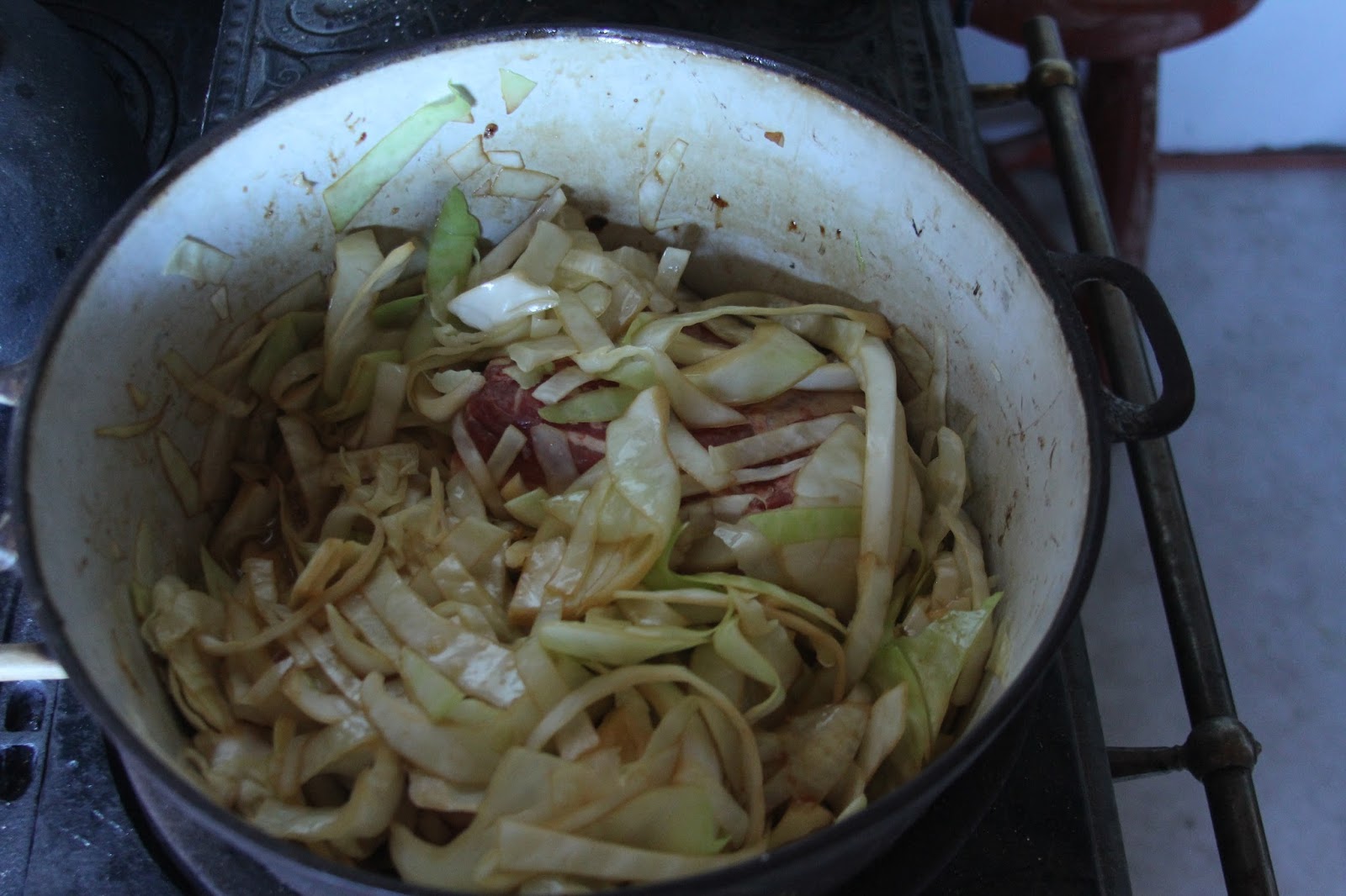 Denne ret syntes jeg bestemt er værd at få på nu, på denne årstid, fordi det er ved at være slutningen af vinteren og kålen er ved at slippe op i vores hustand.