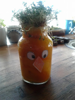 Mit barnebarn, Minna Rosa, har lavet en lille påskekylling som hun har fået med hjem til mor og far.
