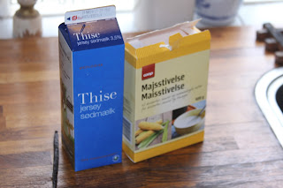 blød lidt majsstivelse op i lidt mælk og tilsæt det til den kogte mælk lidt ad gangen og under omrøring. Kog Cremen op (under omrøring) og tag den straks af varmen når den bobler.