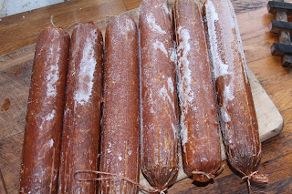Derfor har jeg købt lækre spegepølser fra nogen bekendte som har fået dem speciallavet hos en pølsemager.