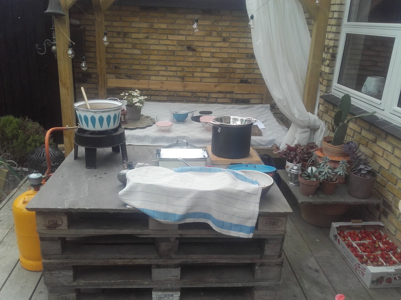 Det var en dejlig og hyggelig formiddag, hvor jeg fik lavet rødgrød, syltetøj, syltede hindbær, rysteribs og saft.