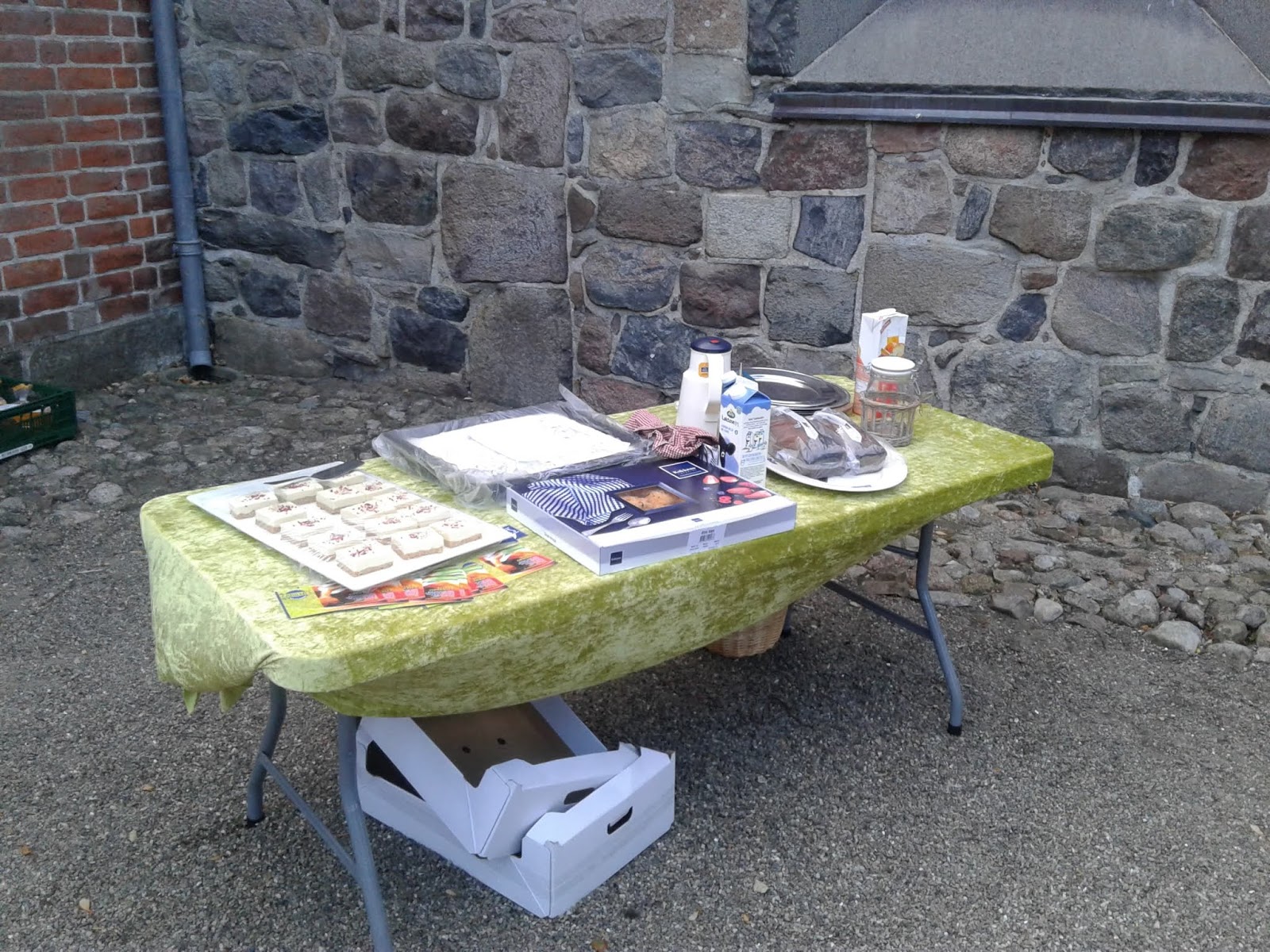 Kagen skulle med til vores høstgudstjeneste hvor der efterfølgende var salg af kaffe, kage og mange andre skønne sponsor gaver.