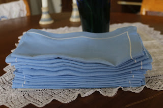 Jeg har nu vasket og koldrullet servietterne. De er nu klar til at komme i skabet til de andre.