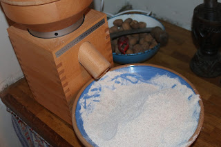 Jeg havde indstillet møllen til at male kornet som det der svare til sigtemel.