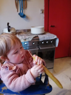 Her sidder Ingrid Marie med sit første lys, som hun har støbt sammen med mormor.