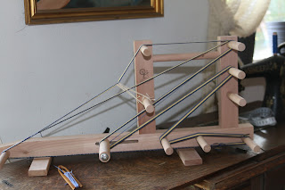 Mens jeg venter på at få sat min væv op til at kunne væve viskestykker, væver jeg bendler til at sy på når de er færdige.