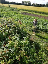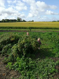 Vores 2 små guldklumper kommer tit forbi morfar og mormor, og sikke dog en fornøjelse det er. Her er de med til at plukke hindbær.